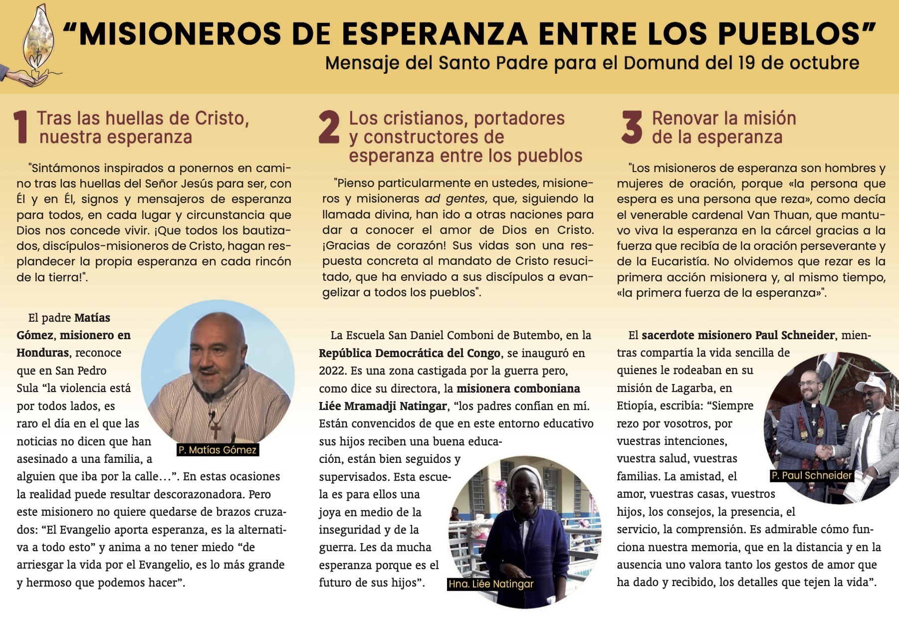Como signo de unión a todos los enfermos misioneros, se recibe el tríptico de enfermos, que es un recordatorio de la vinculación con la misión y los misioneros. Este es el último: